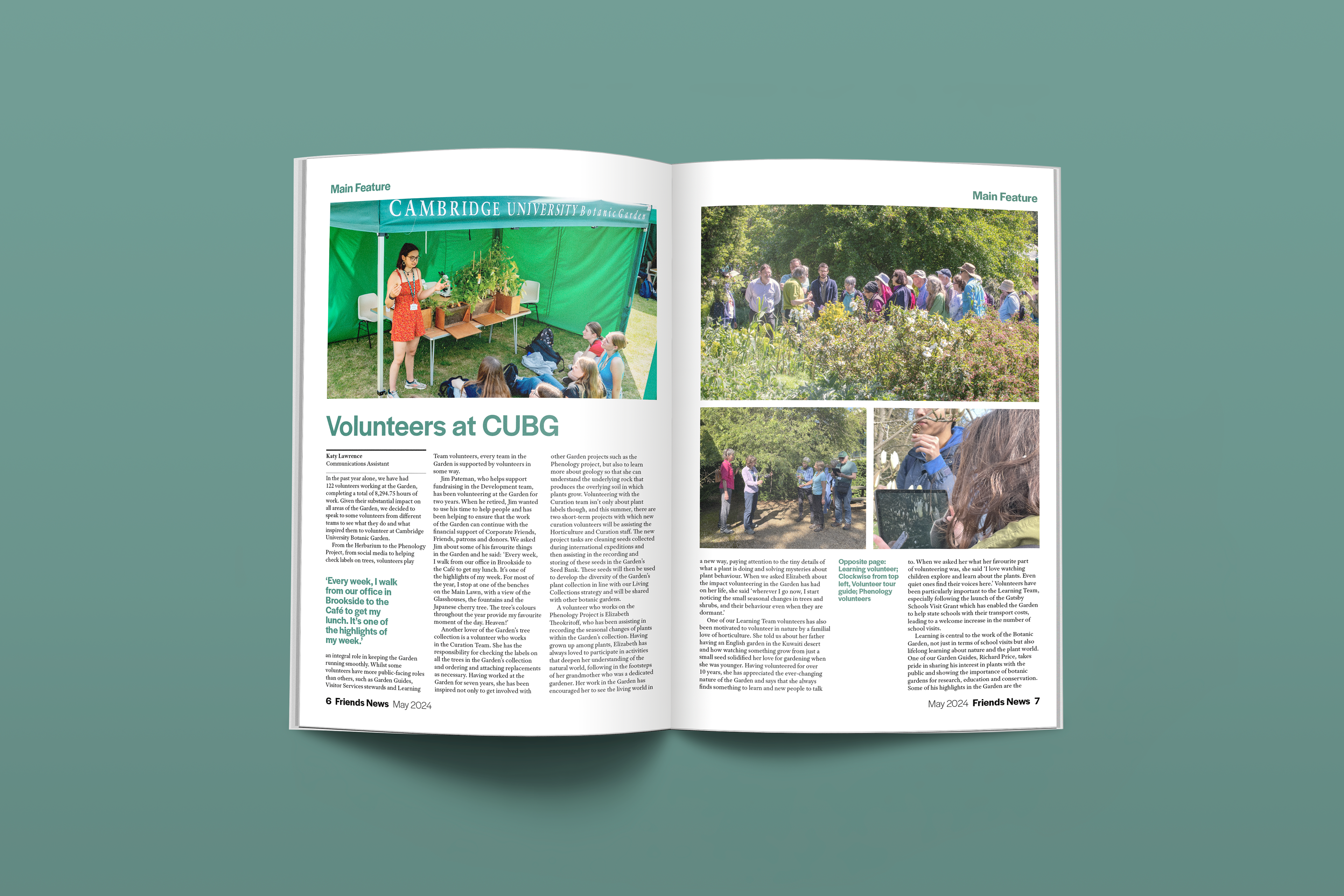 I wanted to make the most of Cambridge University Botanic Gardens' incredible image library, so redesigned their newsletter to enable the use of larger images. I reasoned that even readers who were loyal to the previous design would be won over by the incredible large photos of plants. Adding four pages enabled this, and this combined with a more flexible structure enabled a variety of design solutions on each spread. I wanted to add contrast, so I added a more readable body font – this enabled the text to be slightly smaller too.